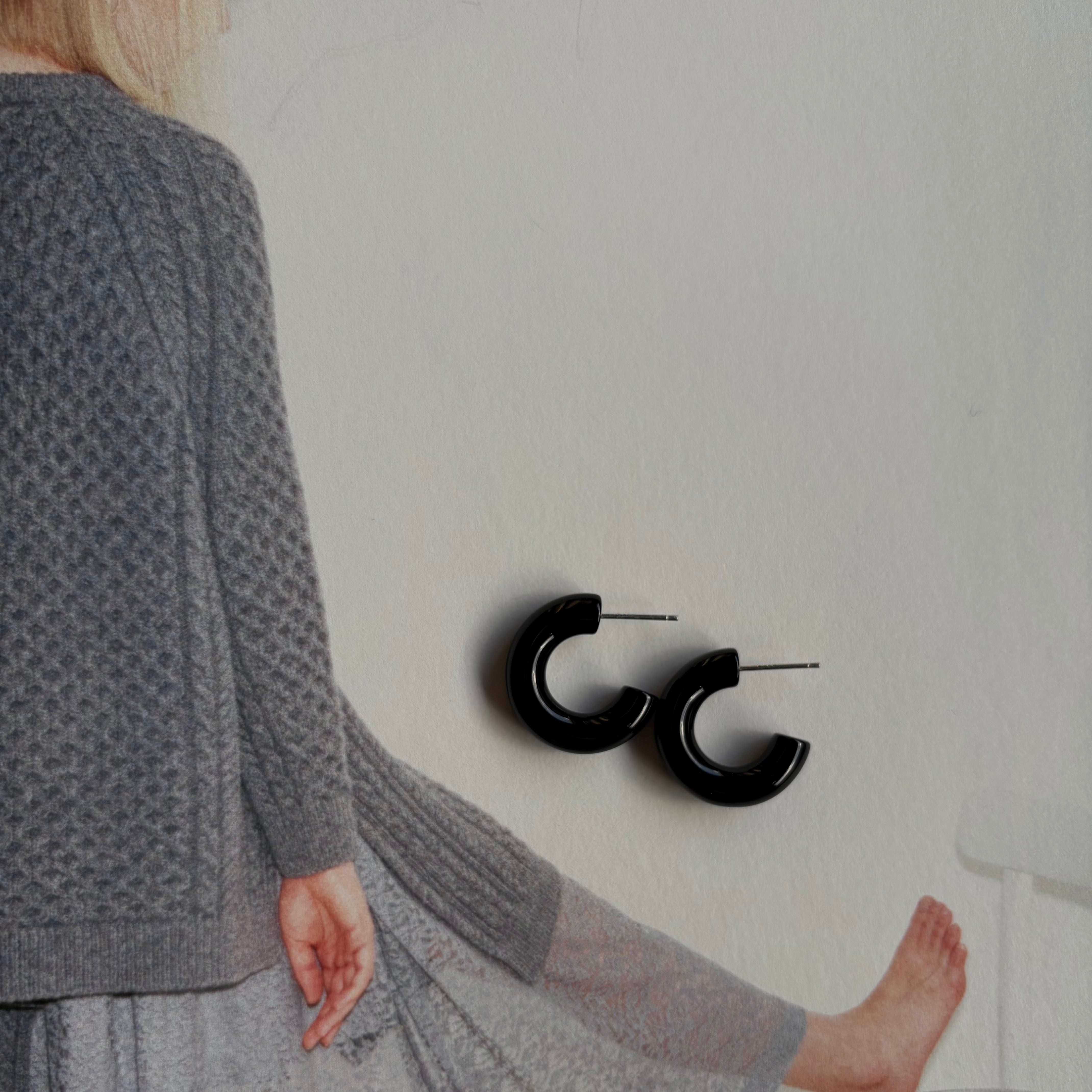 ブラックオニキスを使ったフープピアス。