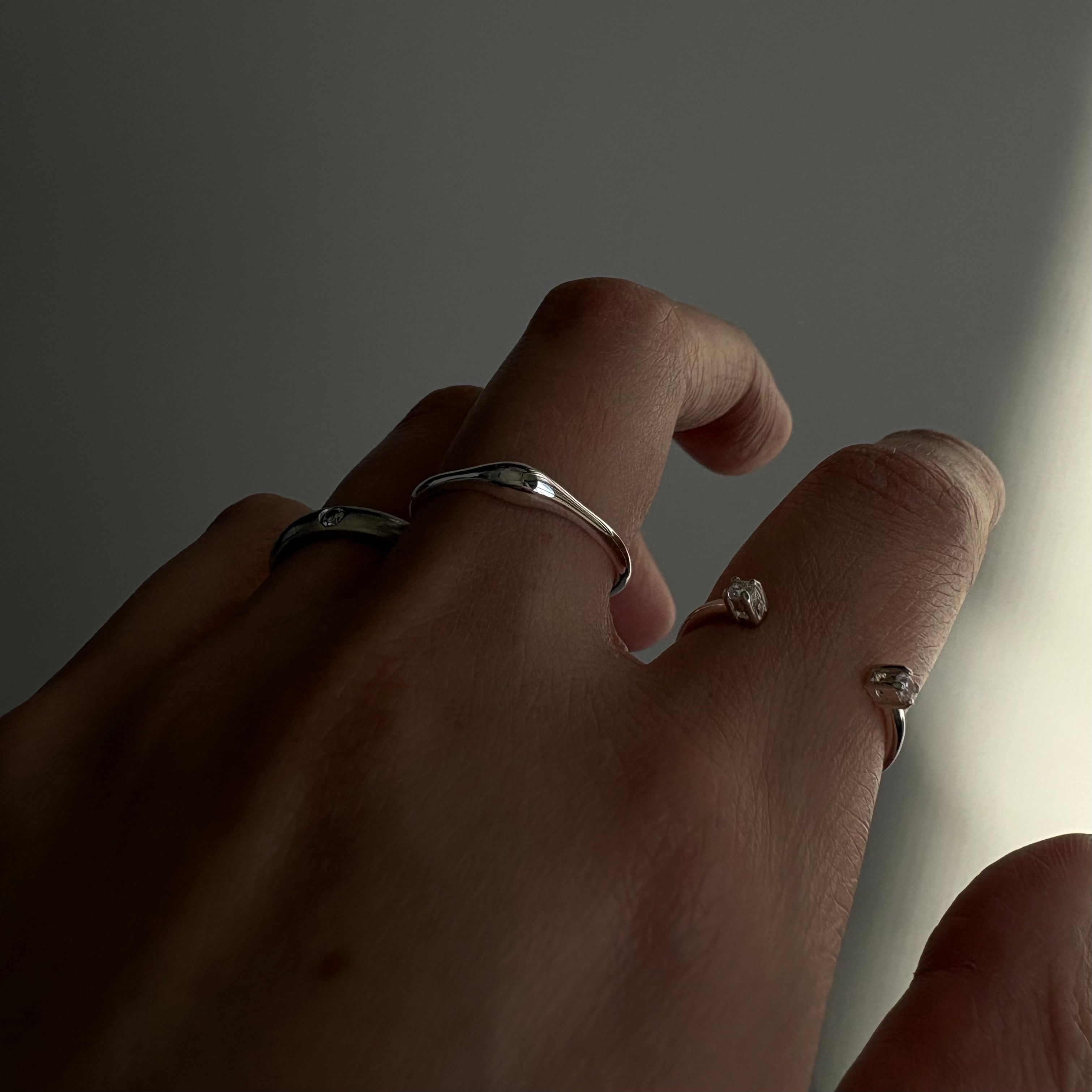 小さな一癖が飽きない毎日使いにもオススメなリングです。重ねづけもしやすく素材の高級感もあるアイテムです。